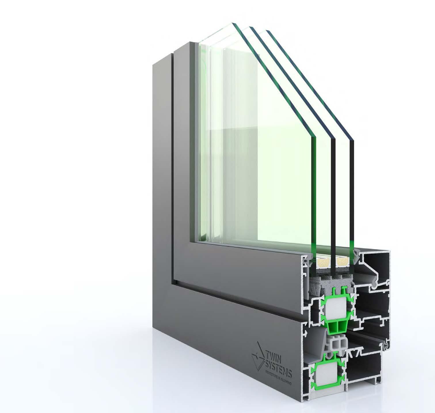 Profili per finestre che consentono la realizzazione di finestre a battente singole, doppie o multiple, nella versione a giunto aperto o a doppia battuta, complanari all'esterno e sovrapposte all'interno. Sono possibili anche telai fissi, a ribalta, a inclinazione e scorrevoli paralleli. Profili per porte: consentono la realizzazione di porte a una o due ante, apribili sia verso l'interno che verso l'esterno, con sovrapposizioni fisse o apribili e vetrine.