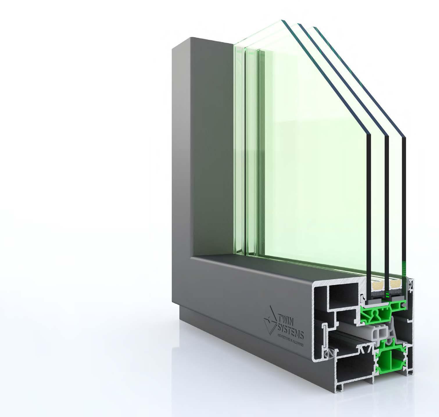 Profilati per finestre che consentono la costruzione di infissi ad una, due o più ante a battente, nella versione a giunto aperto con anta nascosta.