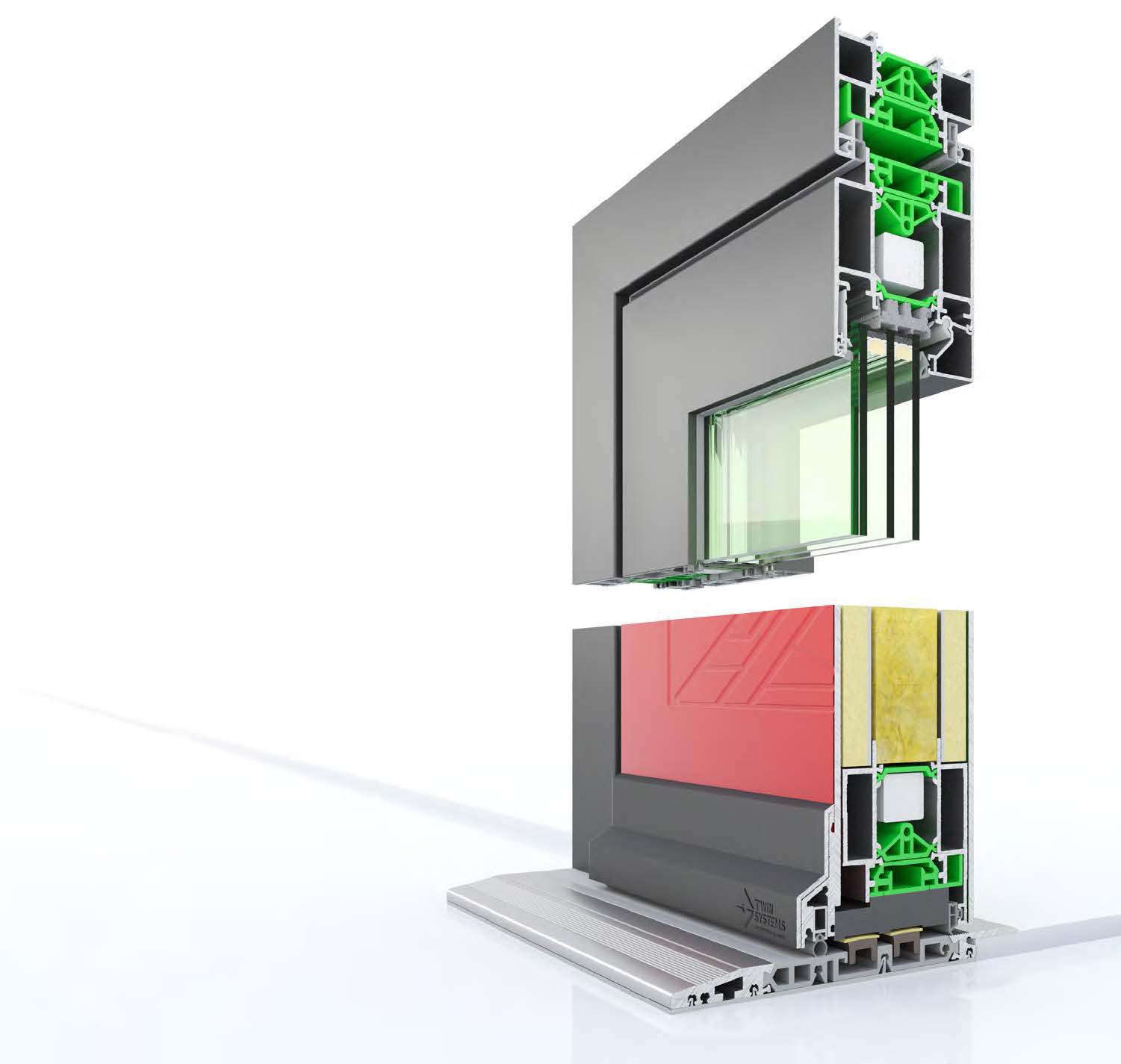 Profilati per porte che consentono la costruzione di porte ad una o due ante, apribili sia all'interno che all'esterno con sopraluci fissi od apribili e vetrine.